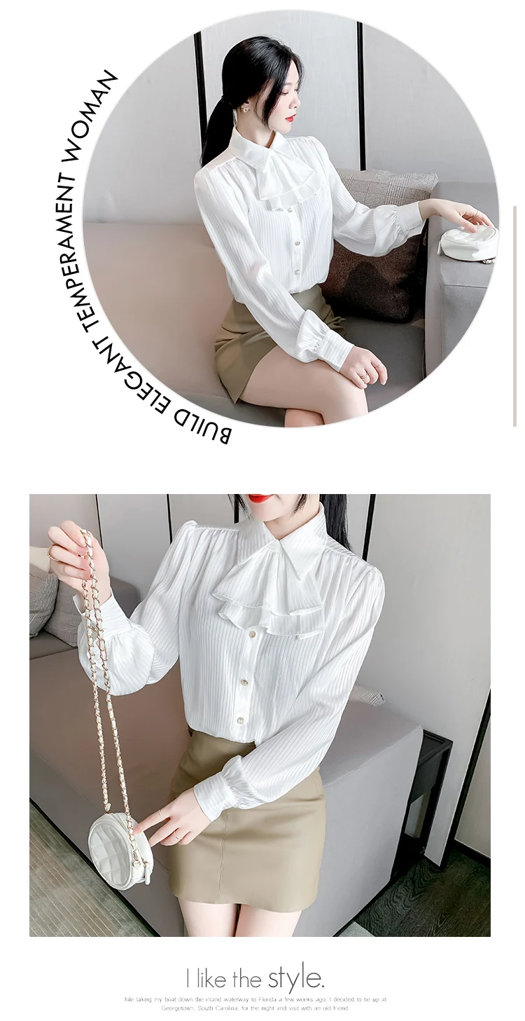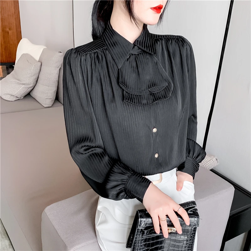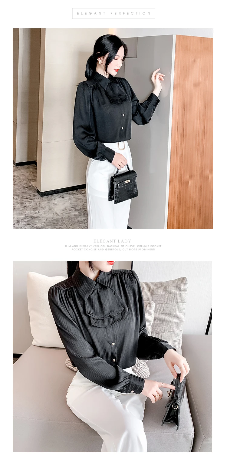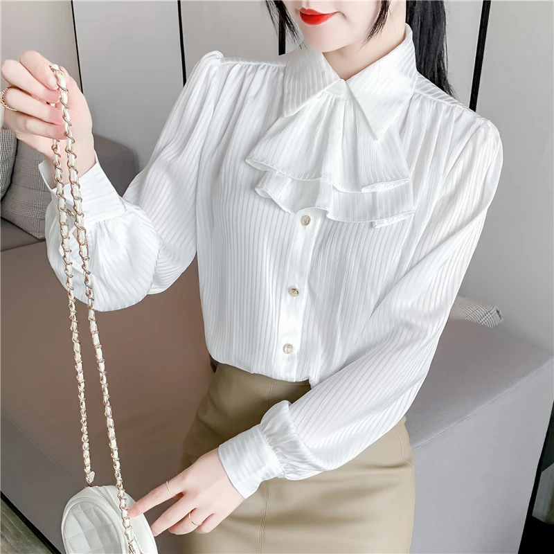 Модные женские туфли в готическом стиле и стиле панк Стиль винтажная блузка в европейском стиле в викторианском стиле дворца с длинным рукавом Блузка, на каждый день, с воротником-стойкой и галстуком-бабочкой вечерние офисные рубашки