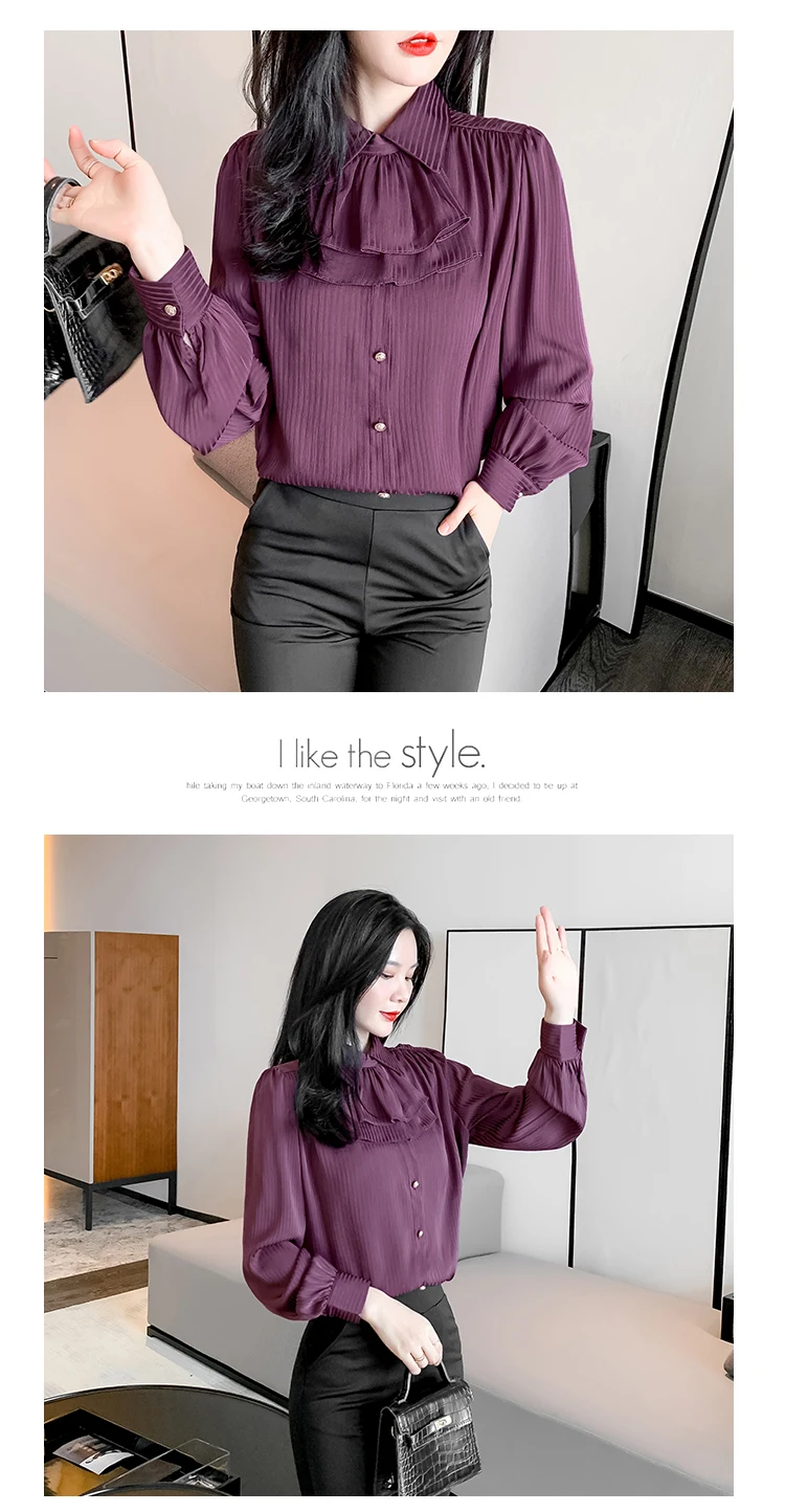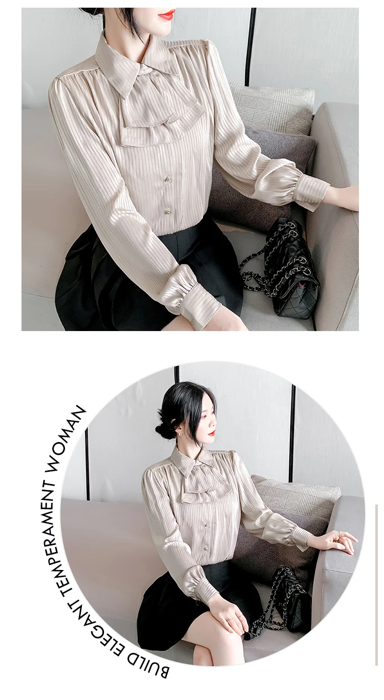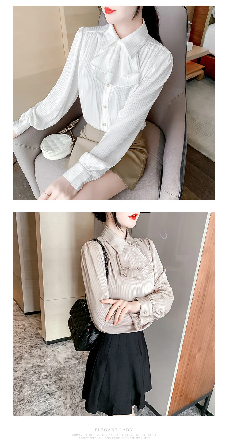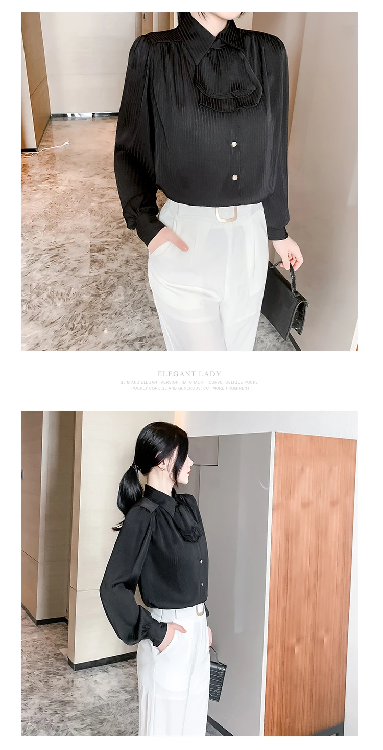 Модные женские туфли в готическом стиле и стиле панк Стиль винтажная блузка в европейском стиле в викторианском стиле дворца с длинным рукавом Блузка, на каждый день, с воротником-стойкой и галстуком-бабочкой вечерние офисные рубашки