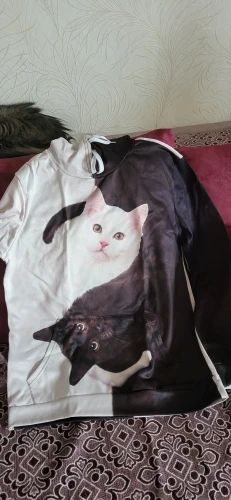 Новинка 2021, черно-белая толстовка с 3D котом, свитшоты, пуловер д...
