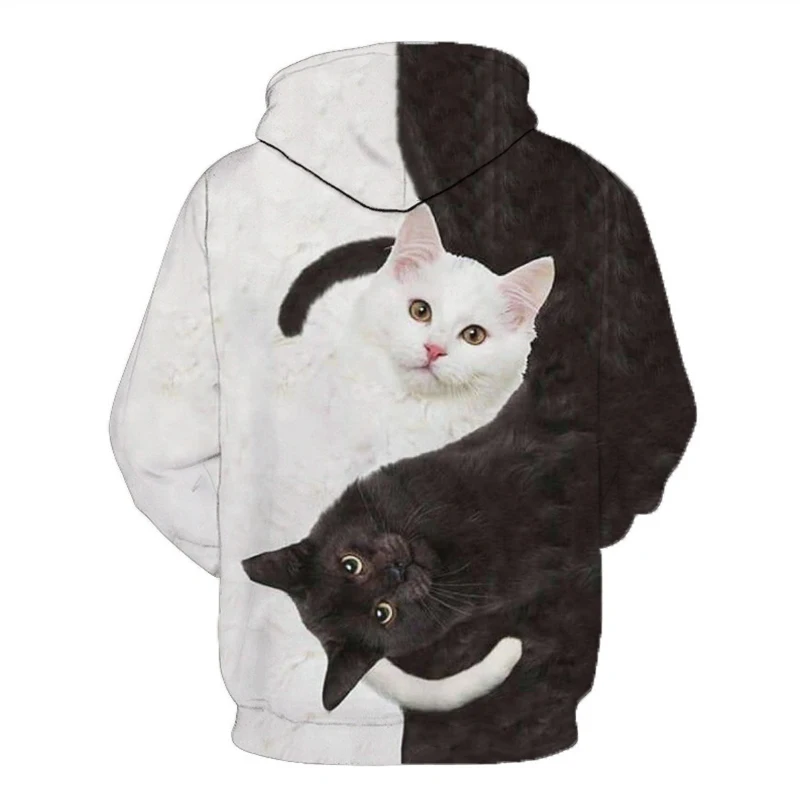 Толстовка МужскаяЖенская с длинным рукавом, свитшот с 3D принтом кота, пуловер, черный и белый цвета