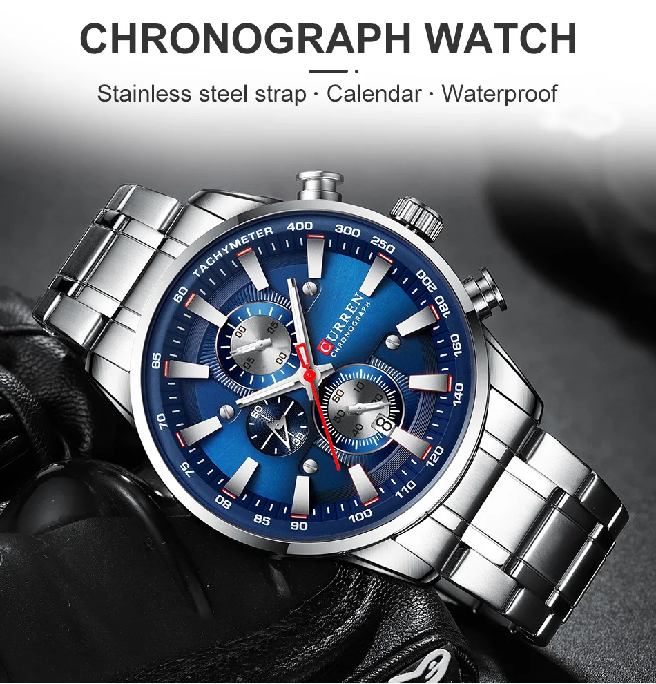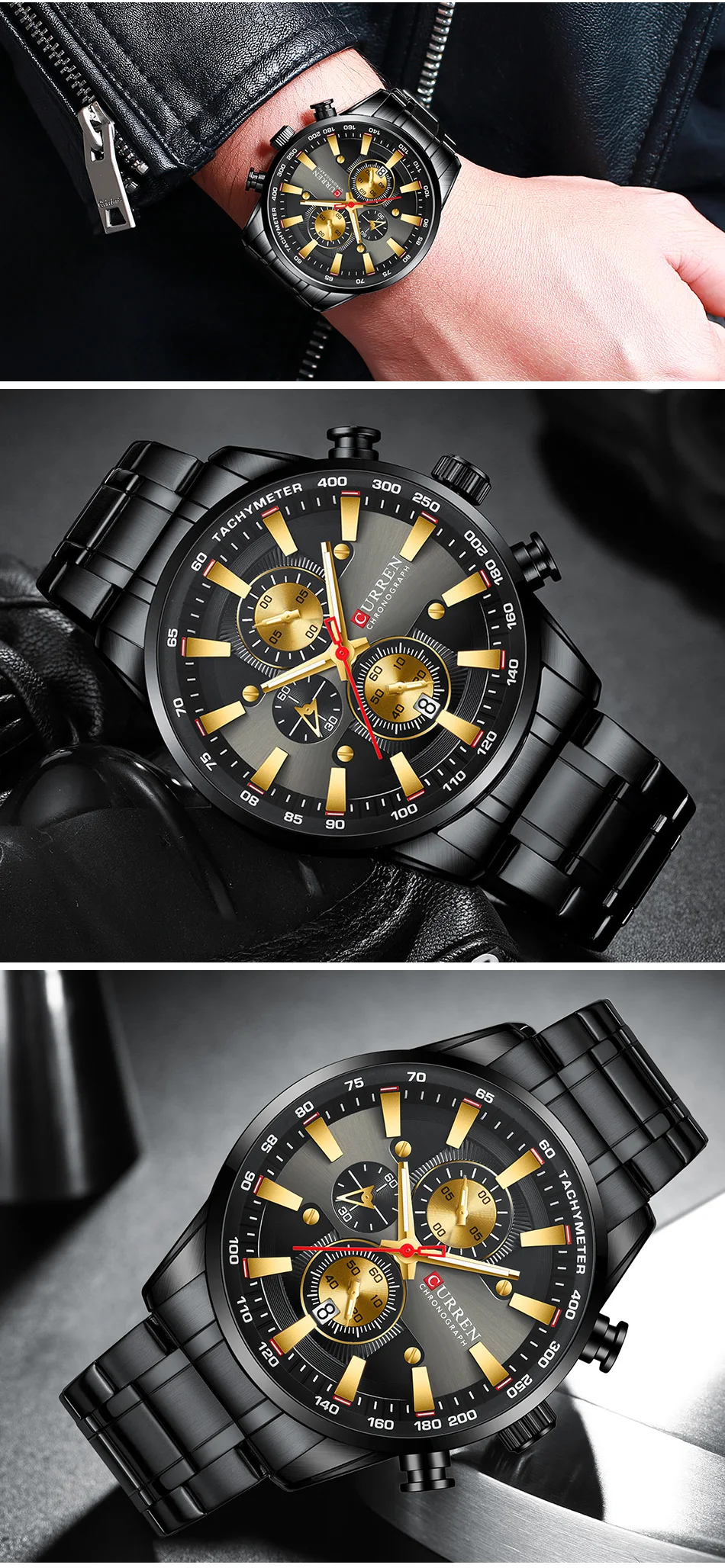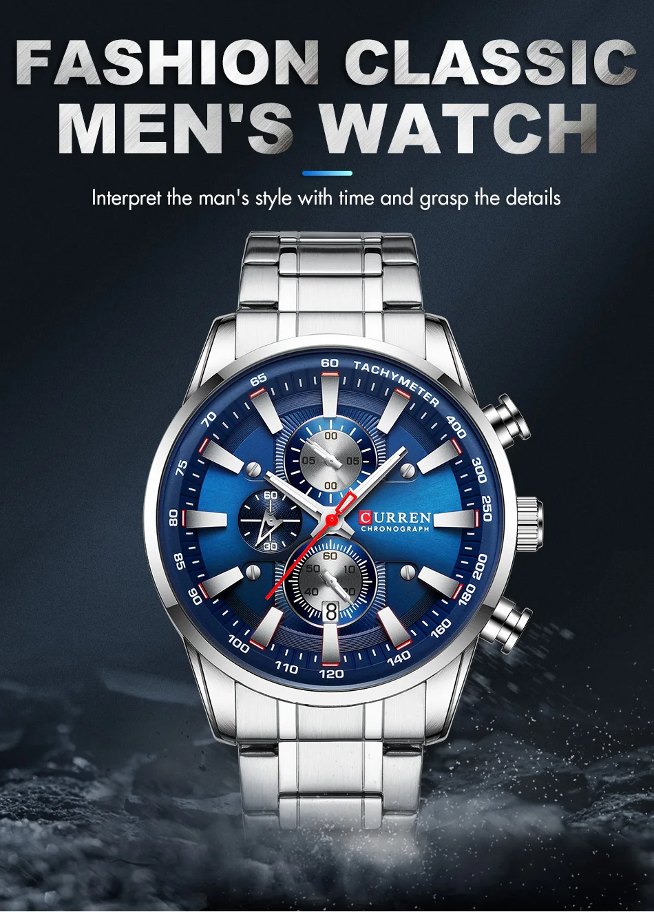 Часы наручные CURREN Мужские кварцевые, роскошные спортивные водонепроницаемые с хронографом и датой