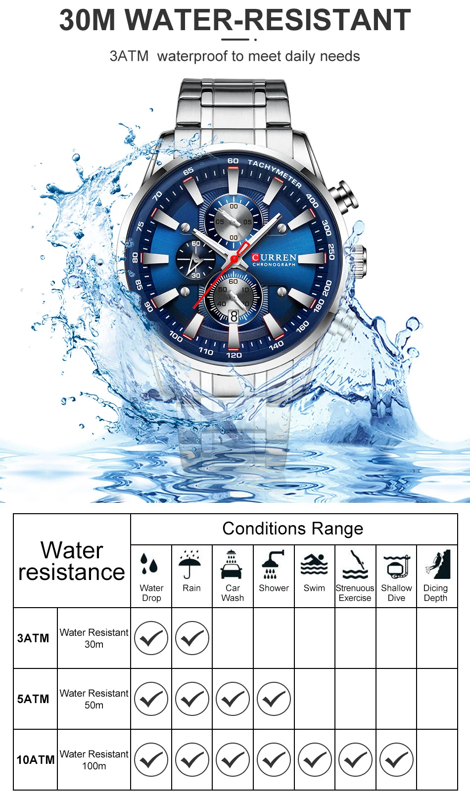 Часы наручные Curren Мужские с хронографом, брендовые Роскошные вод...