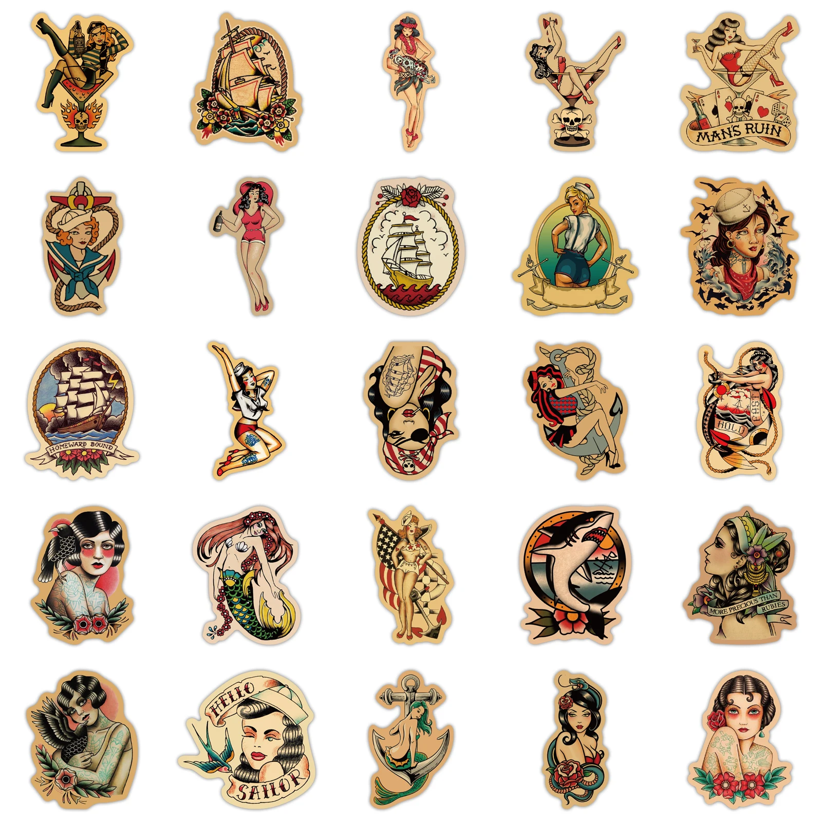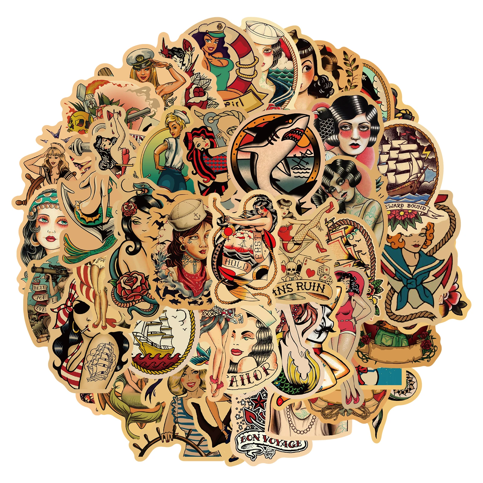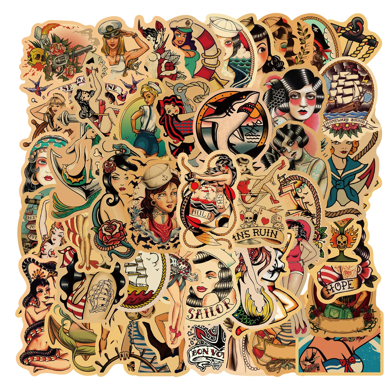 Наклейки в стиле ретро со старыми татуировками для школы, 2550 шт., наклейки-тележки для холодильника, скейтборда, рюкзака, стола, водонепроницаемые наклейки из ПВХ