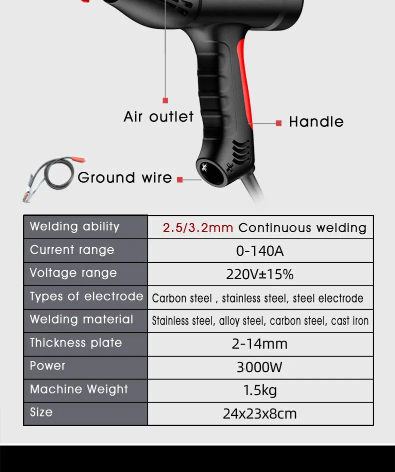 Ручной сварочный аппарат 120A 140A AC220V 3000W MMA с цифровым дисплеемстержнем 2,0-2,5-3,2 мм для 2-14 мм углеродистой стали