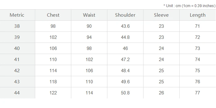 2) Обычно размер рубашки должен превышать размер вашего тела. Вы можете проверить свою обычную рубашку. Если обхват груди у вас составляет 100 см, мы предлагаем вам выбрать рубашку длиной 104 см или 108 см.