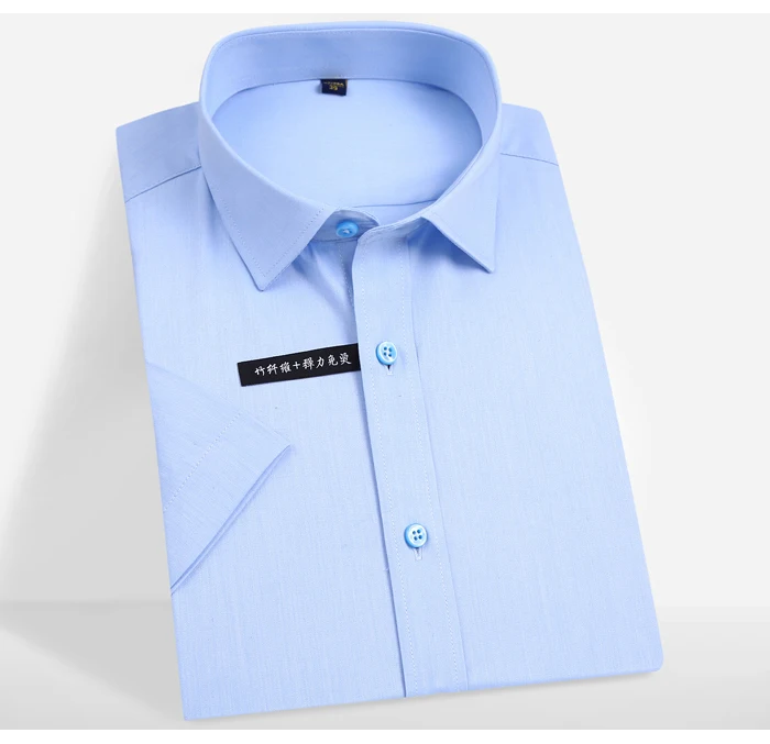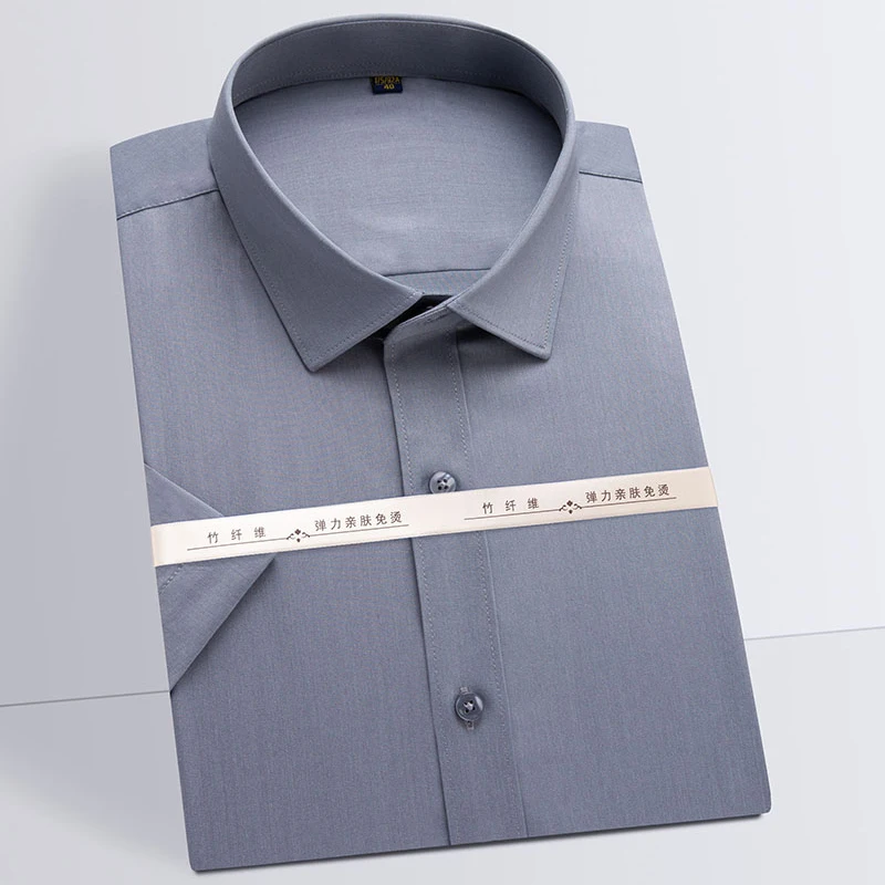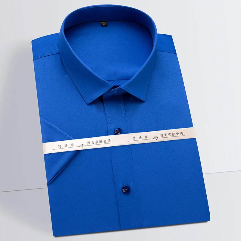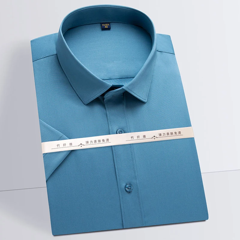 Мужская рубашка с коротким рукавом, из бамбукового волокна, эластичная, формальная, деловая, офисная, простая в уходе, для лета