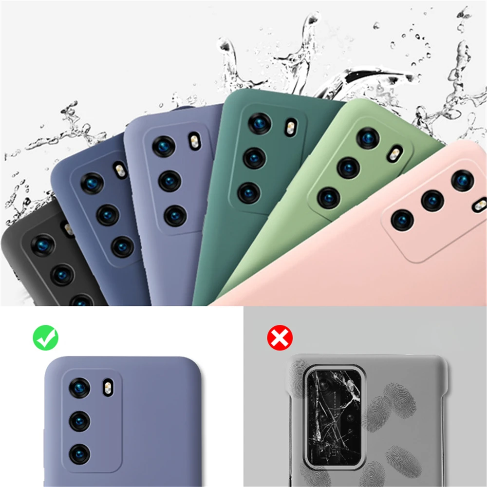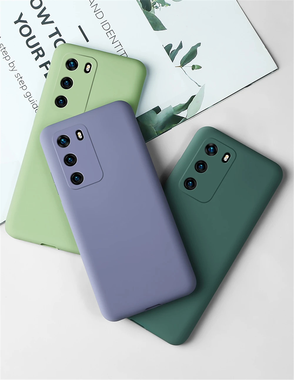 Чехол для телефона из жидкого силикона, однотонный противоударный мягкий чехол для Huawei P50 P40 Lite E P30 P20 P10 Mate 40 Pro Plus RS 30 20X 10
