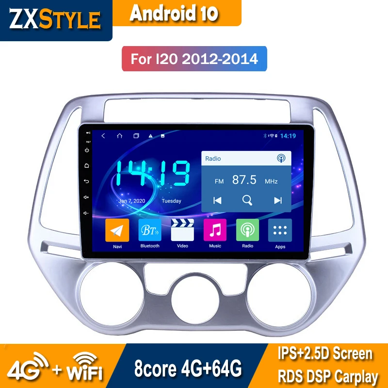 Автомагнитола 4 Гб + 64 ГБ с GPS-навигацией для Hyundai i20 2012 2013 2014, Android 10, мультимедийный плеер DSP CarPlay RDS