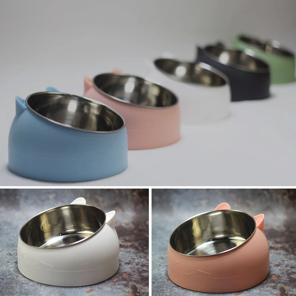 Миска для домашних животных из нержавеющей стали, с поворотом на 15 градусов, нескользящая, миска для кошек и собак