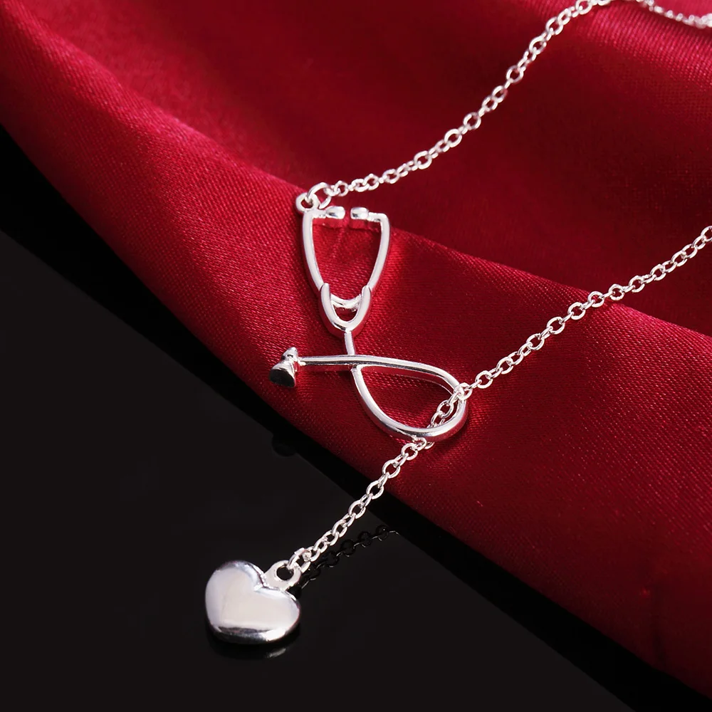 925 Серебряное ожерелье для женщин ювелирные изделия 18 дюймов медсестры подвеской в виде сердца модные рождественские подарки на свадьбу