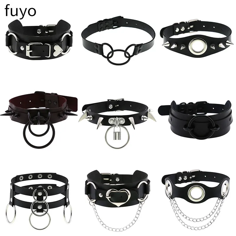 Ожерелье из искусственной кожи для мужчин и женщин, готическое ожер...