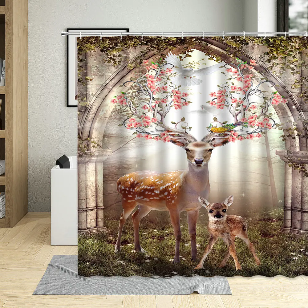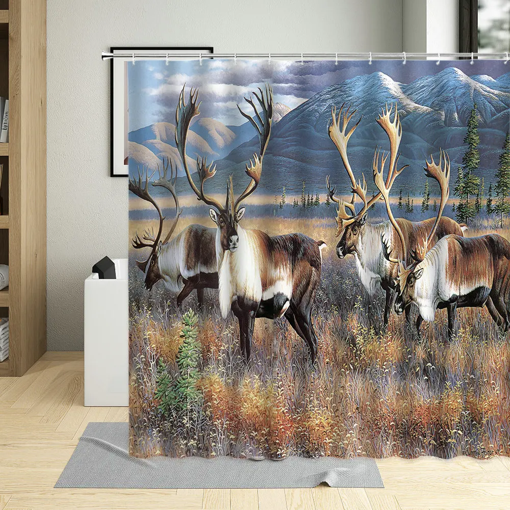 Золотая душевая занавеска в форме лося, Штора для ванной комнаты, в...