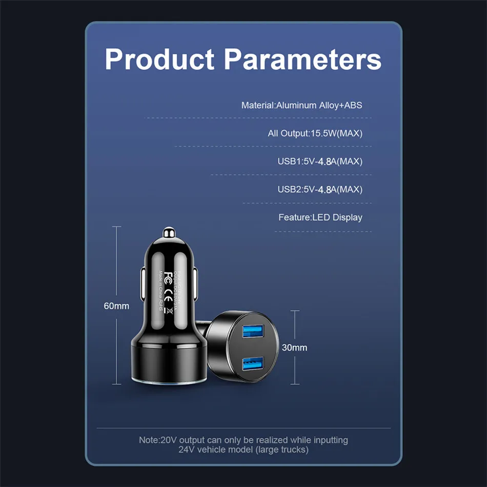 Автомобильное зарядное устройство с 2 USB-портами, 4,8 А, 5 В