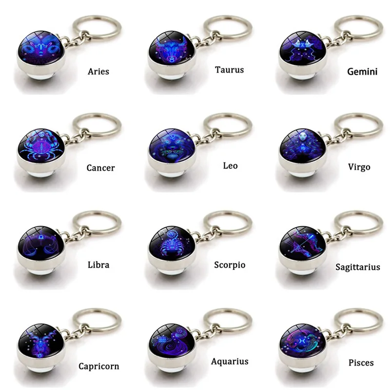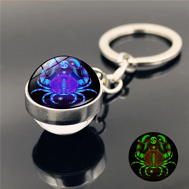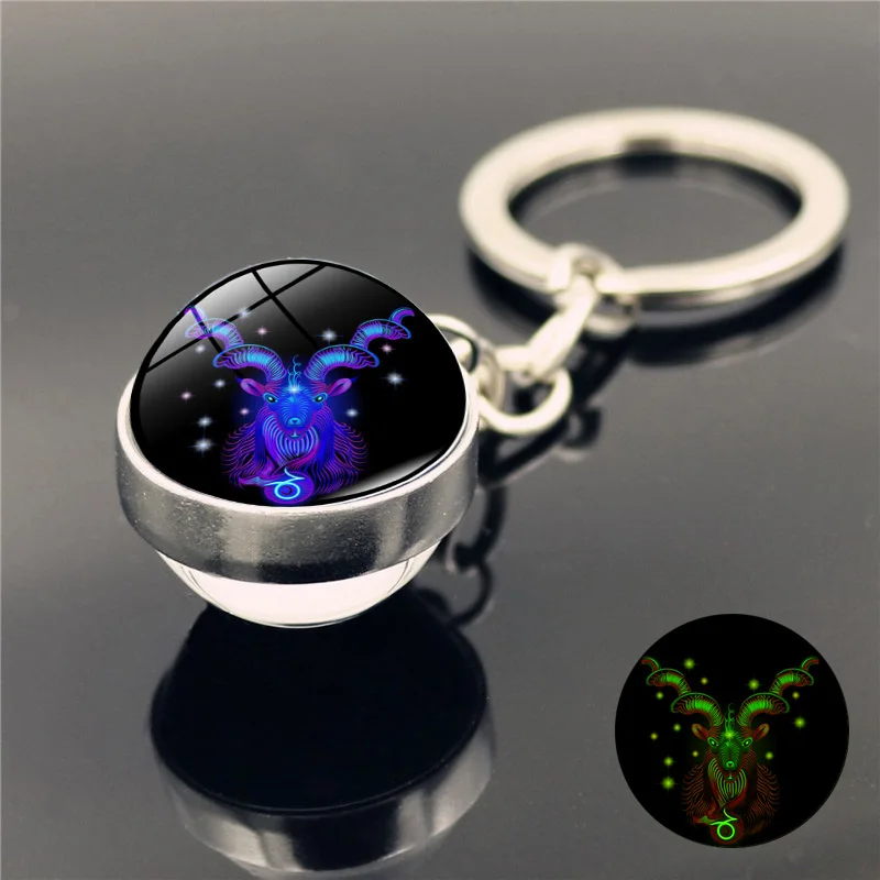 Светящийся брелок 12 созвездий, оптовая продажа, двусторонний стеклянный шарик, брелок для ключей, подарок на день рождения