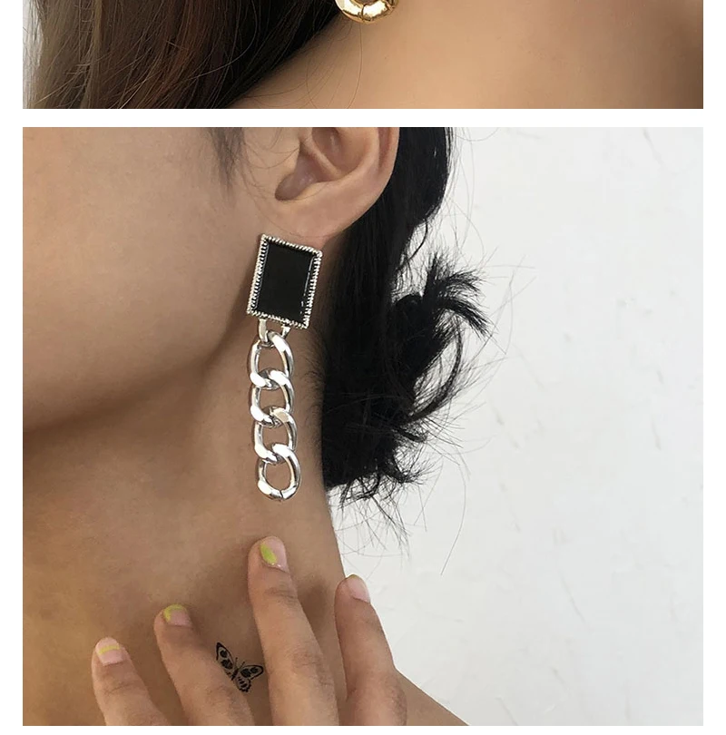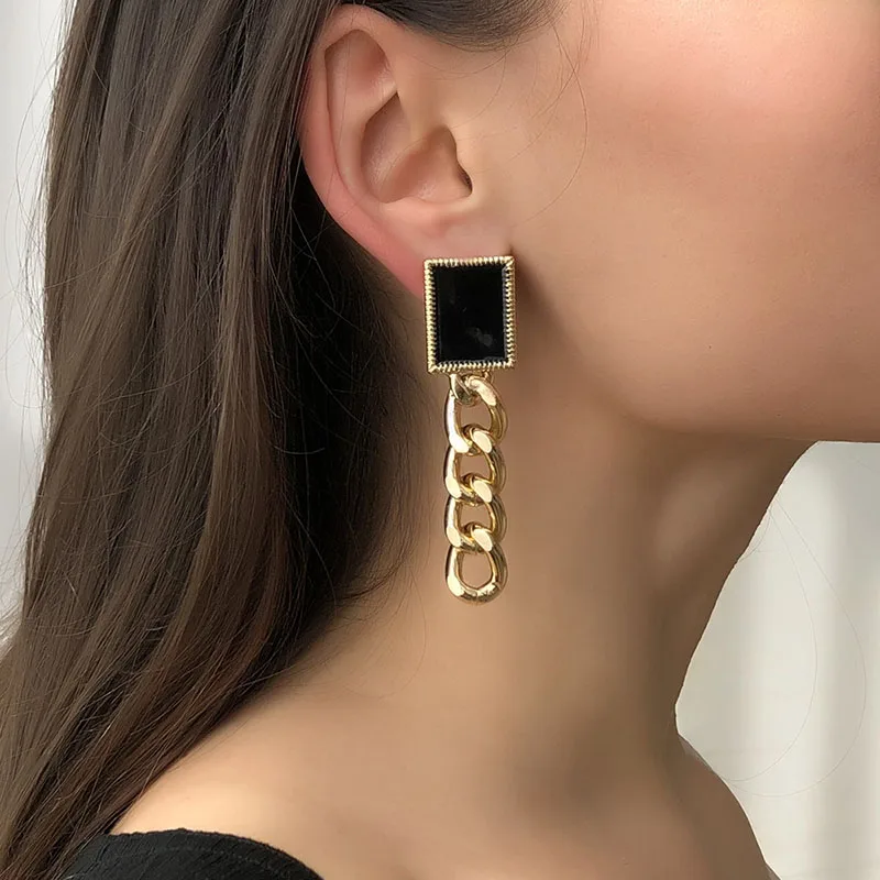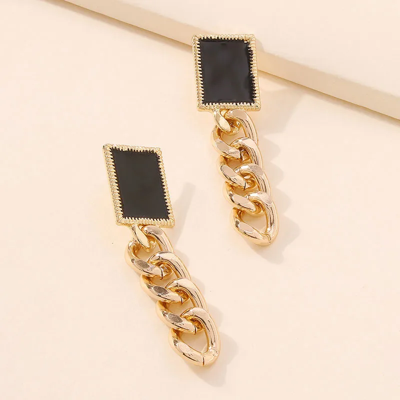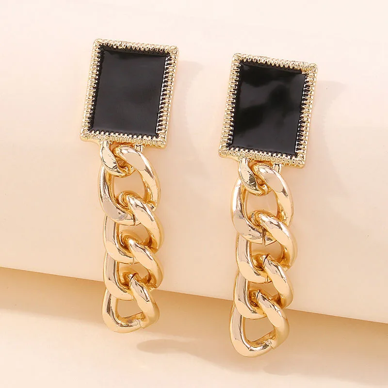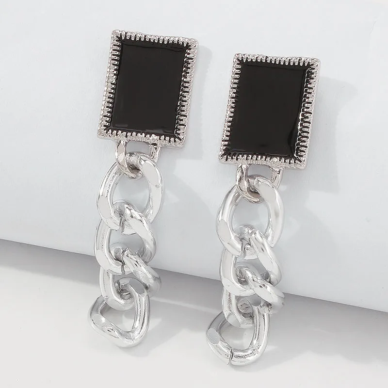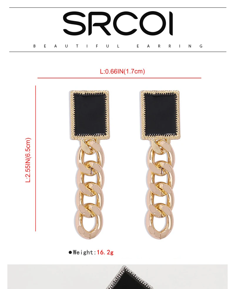SRCOI модные крупные металлические цепочки с кисточками Черная Эмаль Висячие серьги женские панк хип хоп ювелирные изделия Аксессуары для вечеринок 202105