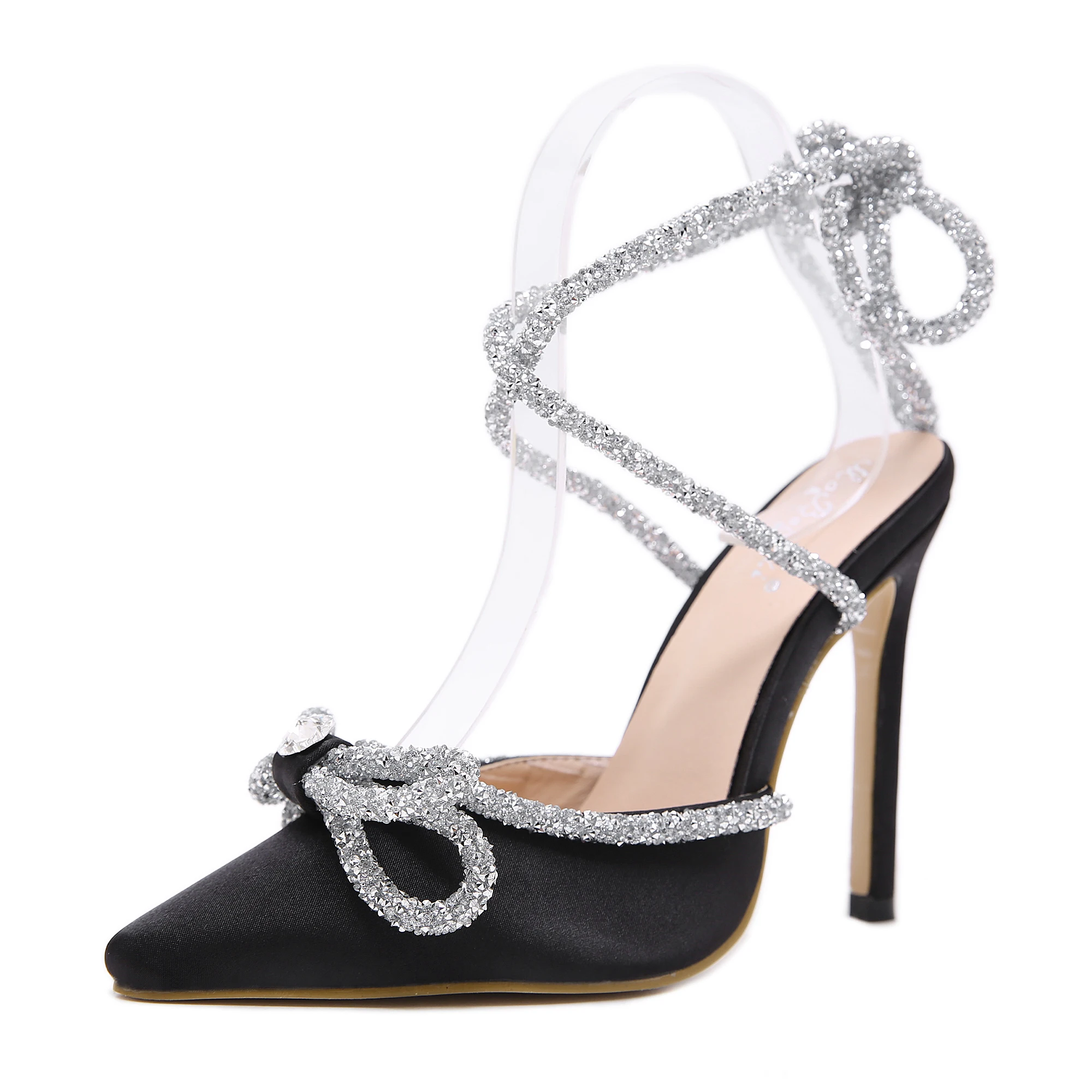 Обувь с острым носком; Модные женские сандалии; Обувь Пятно Ремешок на щиколотке на тонком высоком каблуке, с бантом Стразы Декор летние женские босоножки вечерние женские туфли-лодочки