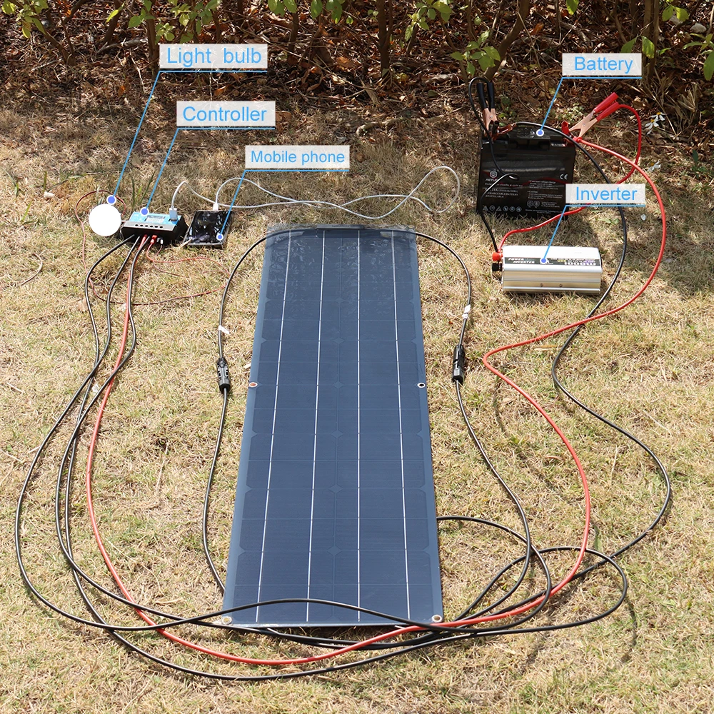 солнечная панель батарея солнечные панели 12v 200 Вт 100 Вт 50 Вт внешний аккумулятор комплект зарядное устройство для солнечных батарей для мобильного телефона RV караван лодка кемпер крыша домашняя система наруж