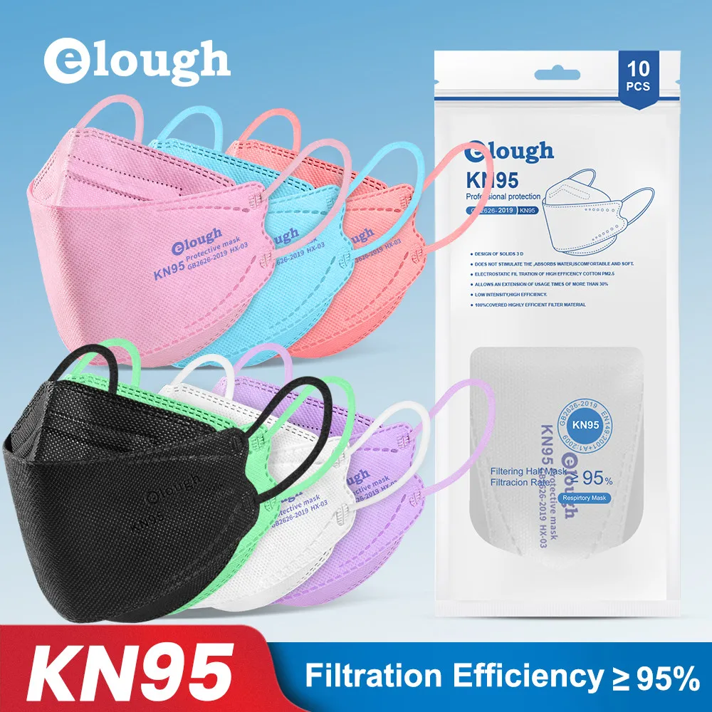 Многоцветная маска для лица Elough KN95, 4-слойная многоразовая мас...