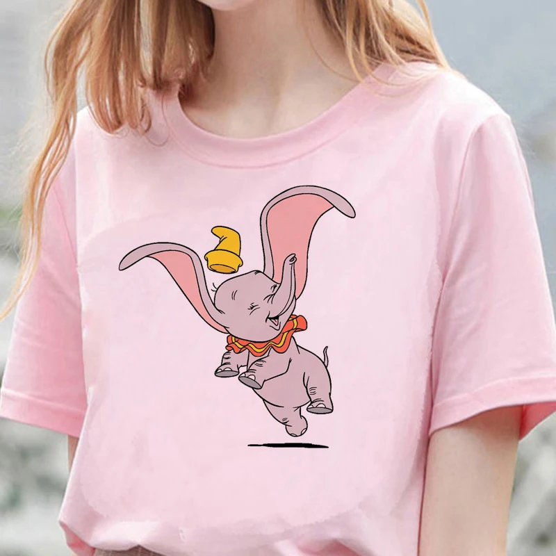 Футболка Kawaii с изображением Диснея слона Дамбо женские летние топы мультфильм унисекс Harajuku Графические футболки корейский стиль детская футболка женская
