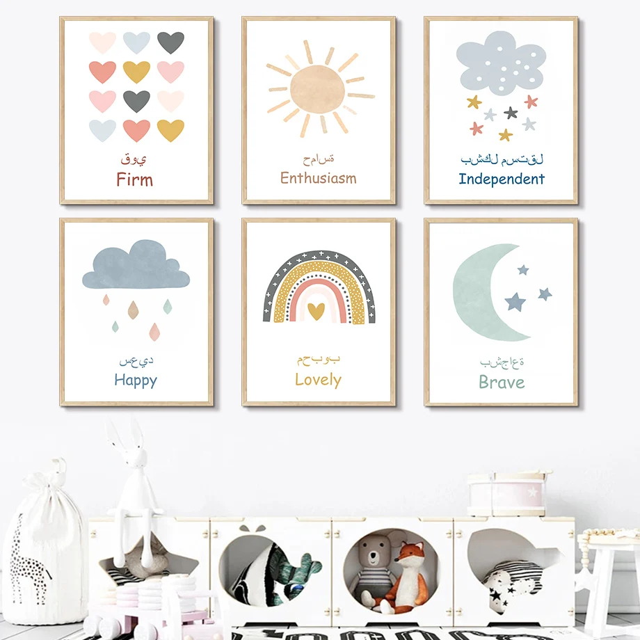 Звезды Радуга облако арабская каллиграфия детская настенная Картина...