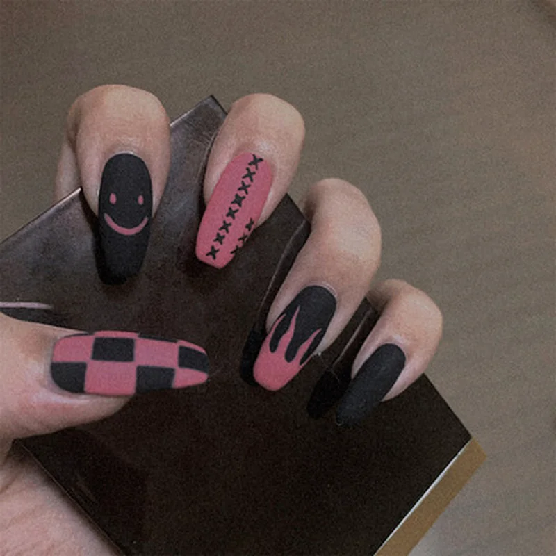 24 шт. накладные ногти с рисунком пламени персика износ Готовые Ногти таблетки накладные ногти съемный Маникюр красивые накладные ногти
