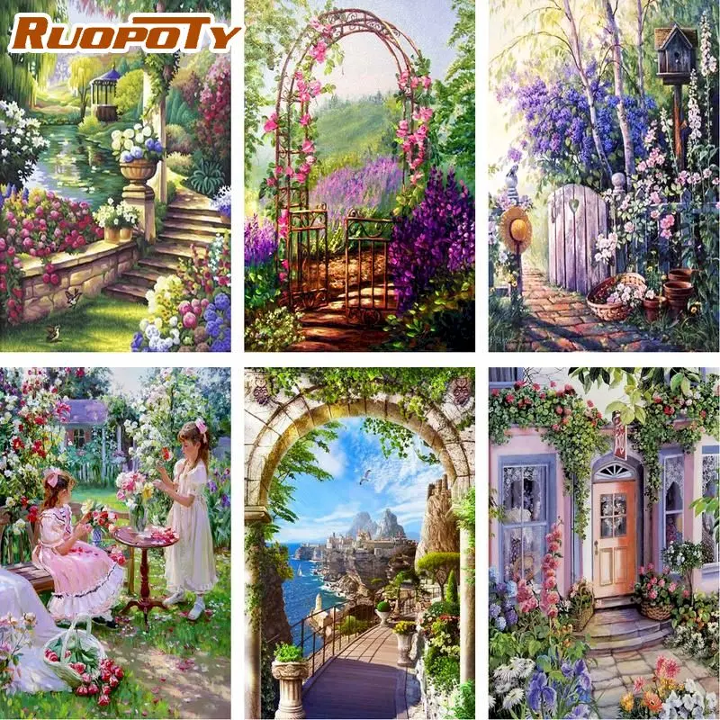 Раскраска по номерам для сада RUOPOTY, 60x75 см, для взрослых, рама для пейзажа