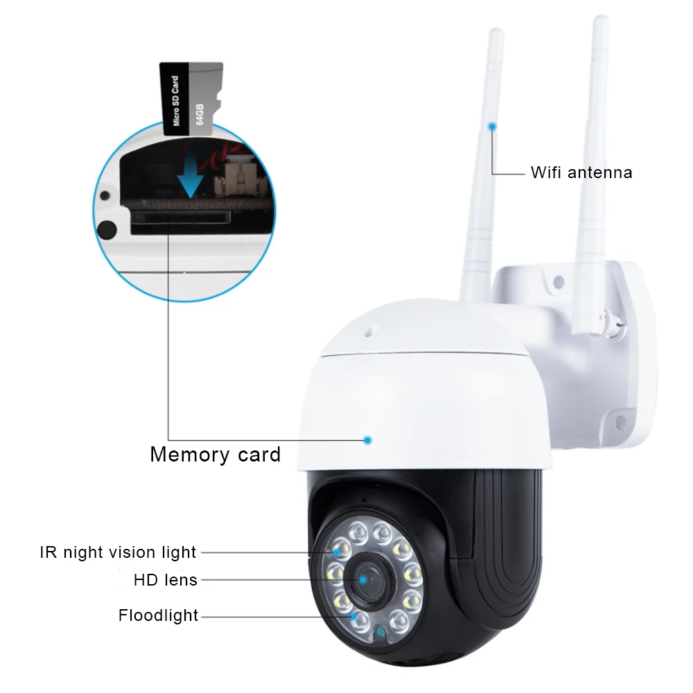 IP Камера PTZ 1080P Wi-Fi домашней безопасности Камера открытый светодиодныйИК Ночное видение двухканальный приём звука оповещение при обнаружении движения камера наблюдения