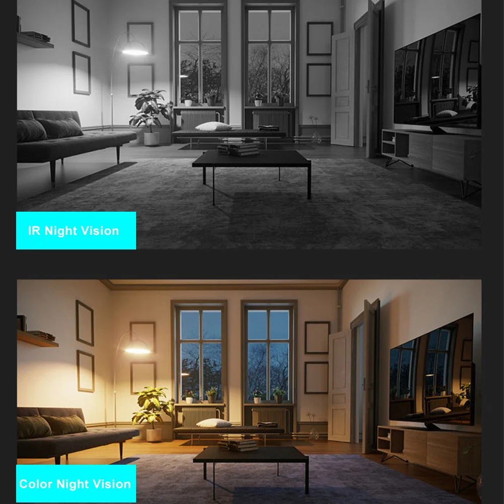 Камера Безопасности может поворачиваться на 355 градусов по горизонтали и на 90 градусов по вертикали через панорамирование/наклон. Автоматическое распознавание и отслеживание движущихся объектов.