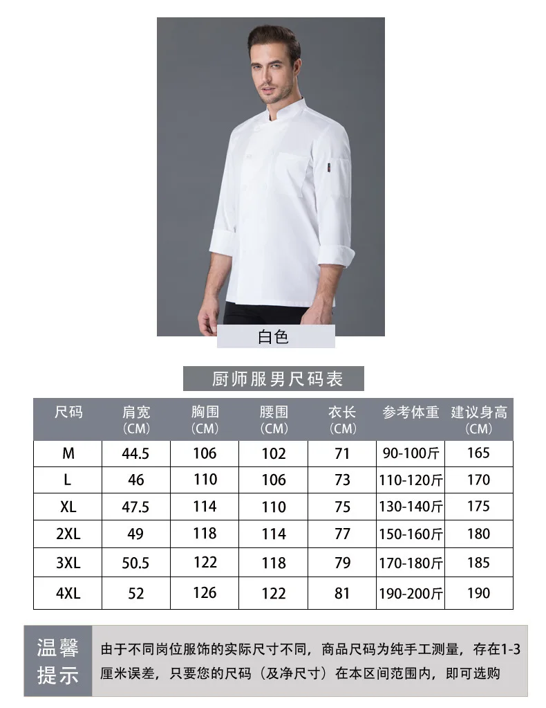 Униформа шеф-повара с длинным рукавом Осенняя работа отель с...US $25,46