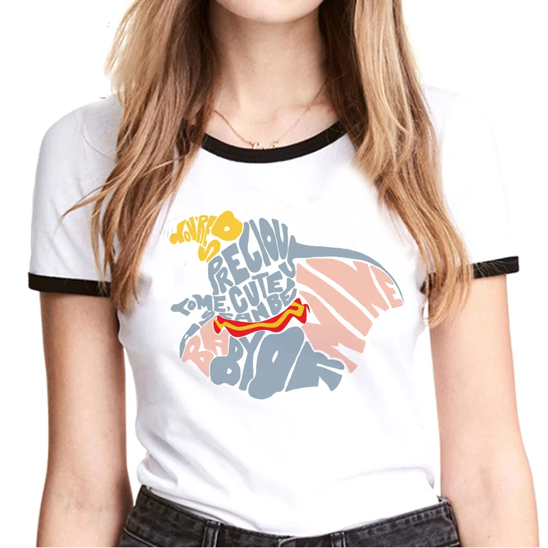 Футболка женская с принтом слона Дамбо, милый топ в стиле унисекс, с мультяшным принтом, в стиле Харадзюку, в Корейском стиле, лето