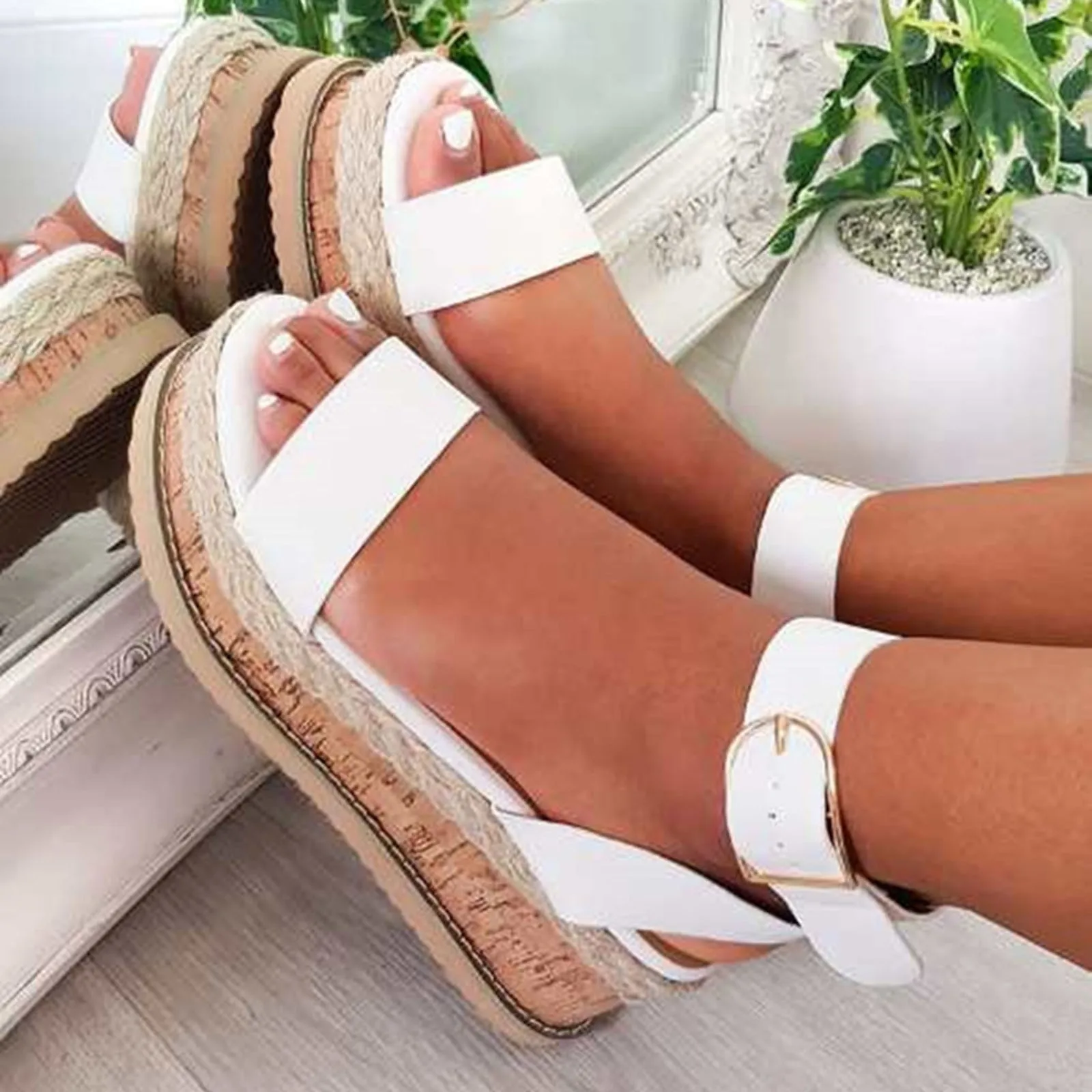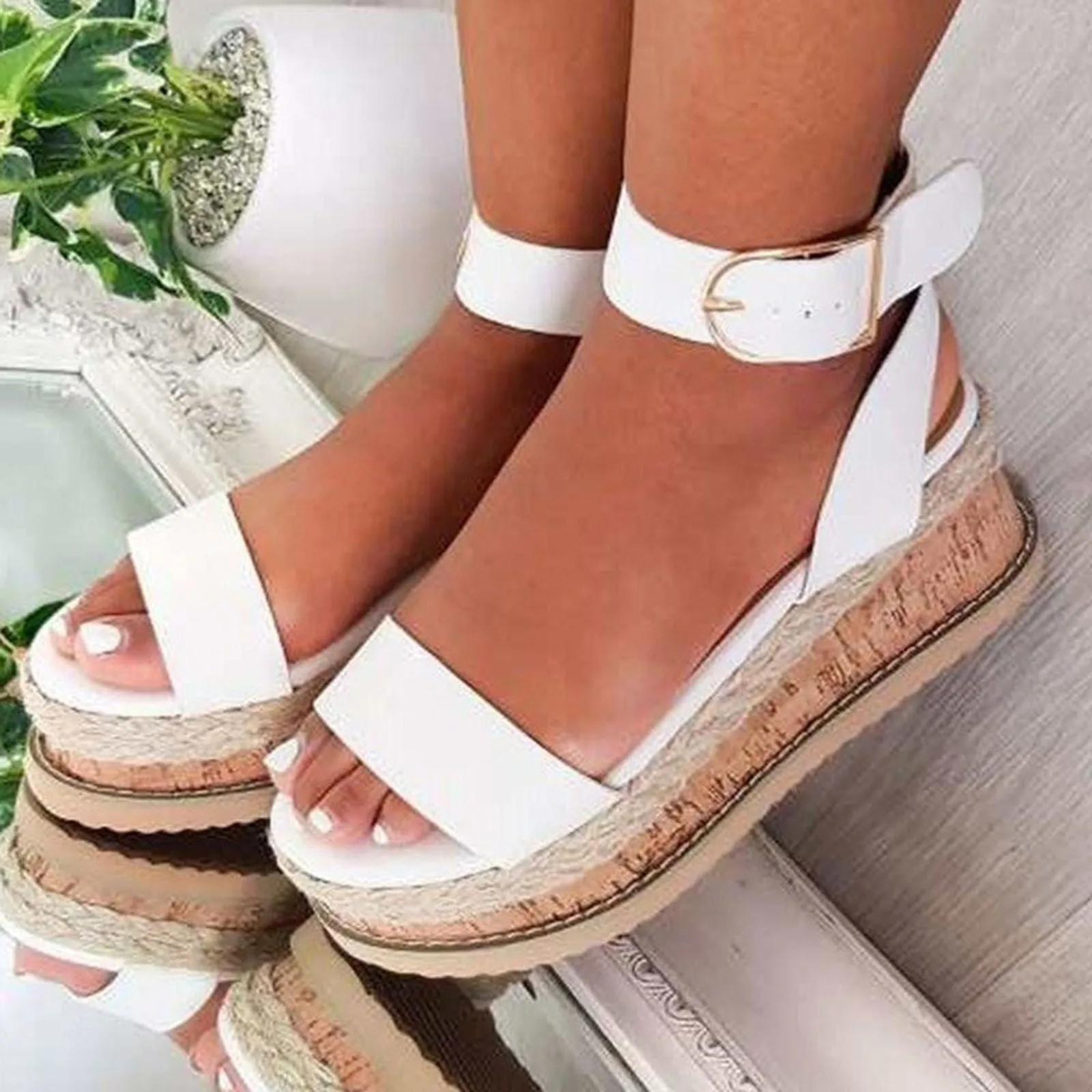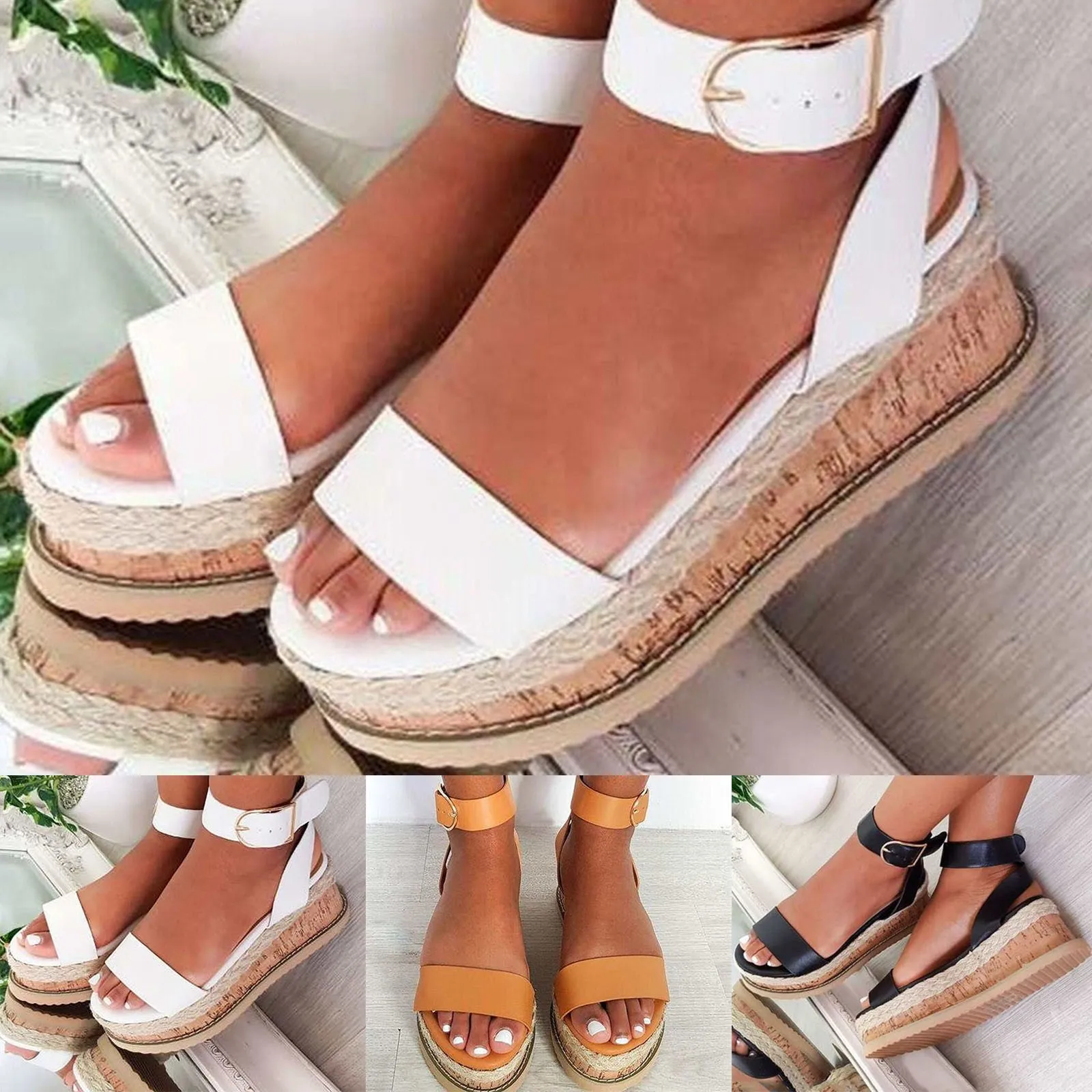 2021 модные сандалии; Женская летняя обувь; Дышащие повседневные римские женские сандалии без застежки на толстой платформе с пряжкой; #40