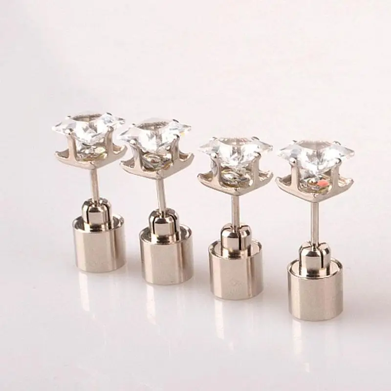 Серьги-гвоздики унисекс, квадратные циркониевые, со светильник кой, для женщинмужчин, для вечевечерние, ночного клуба, праздничные украшения, 1 шт.