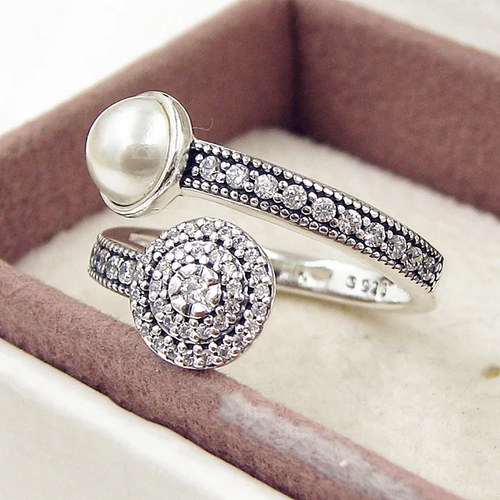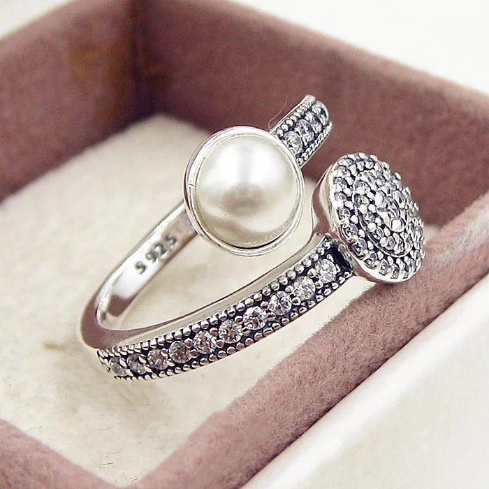 Серебряное светящееся кольцо S925 с белым жемчугом и кристаллами для женщин, Свадебная вечеринка, Женские Ювелирные украшения из драгоценных камней