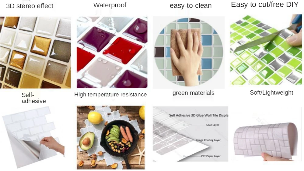 Самоклеящаяся настенная плитка, водонепроницаемая 3D перегородка дл...