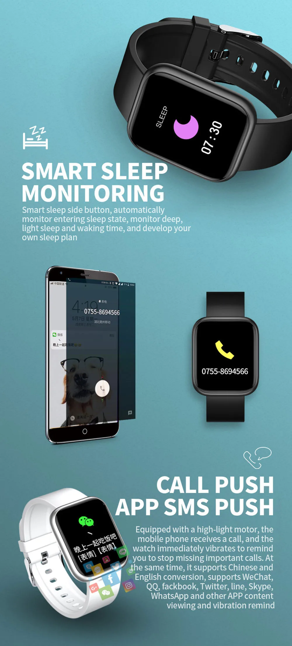 Умные часы D20 с Bluetooth, напоминанием о звонках, удаленной камер...