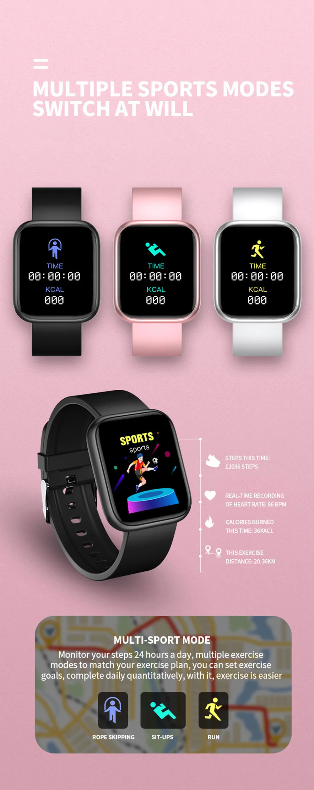 Y68 педометры, спортивные часы, цветной экран, спортивный счетчик ш...