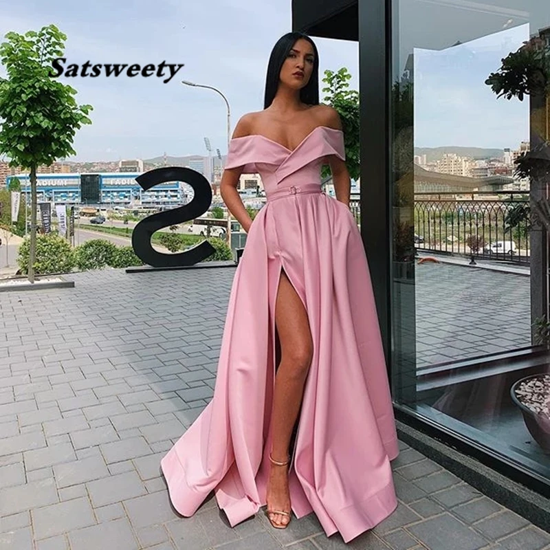 Простые элегантные длинные вечерние платья 2021 с открытыми плечами и V-образным вырезом Дешевые атласные вечерние платья Королевского синего цвета в арабском стиле
