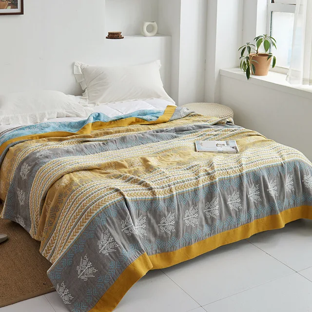 Японское геометрическое Полосатое одеяло, летнее крутое одеяло из марли, мягкое одеяло для общежития, домашнего декора в стиле бохо