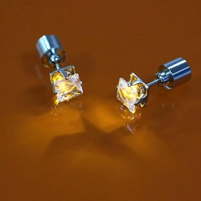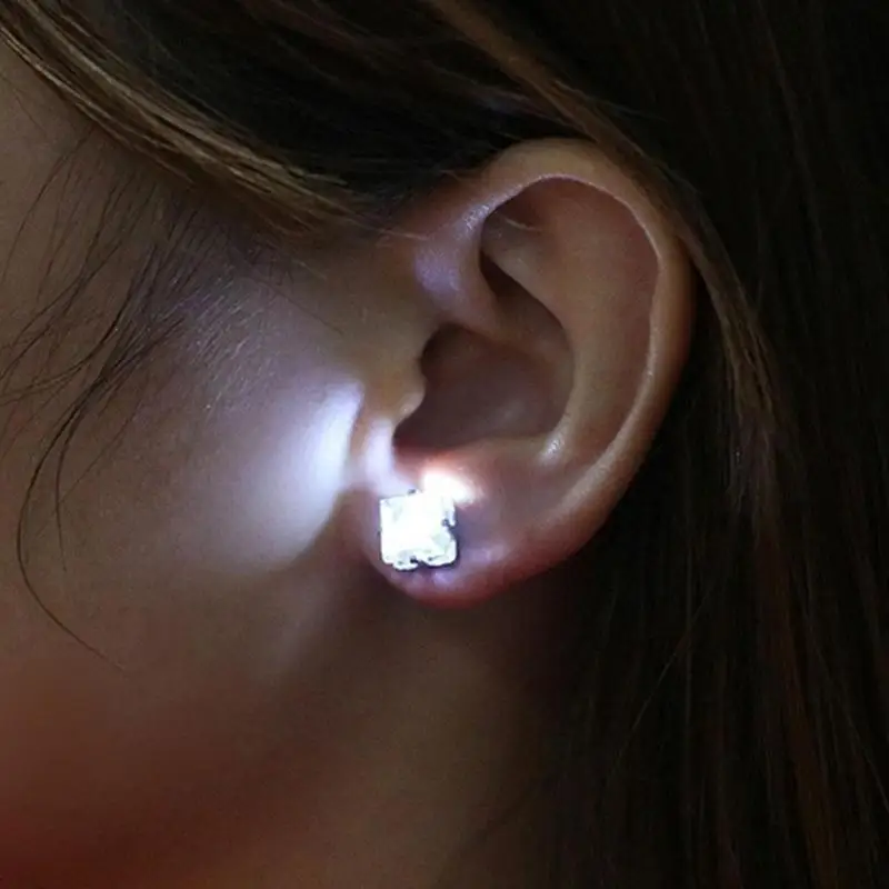 Серьги-гвоздики унисекс с квадратным цирконом, модные украшения со светодиодной подсветкой, уникальные ювелирные украшения для вечеринки, ночного клуба, фестиваля, 1 шт.