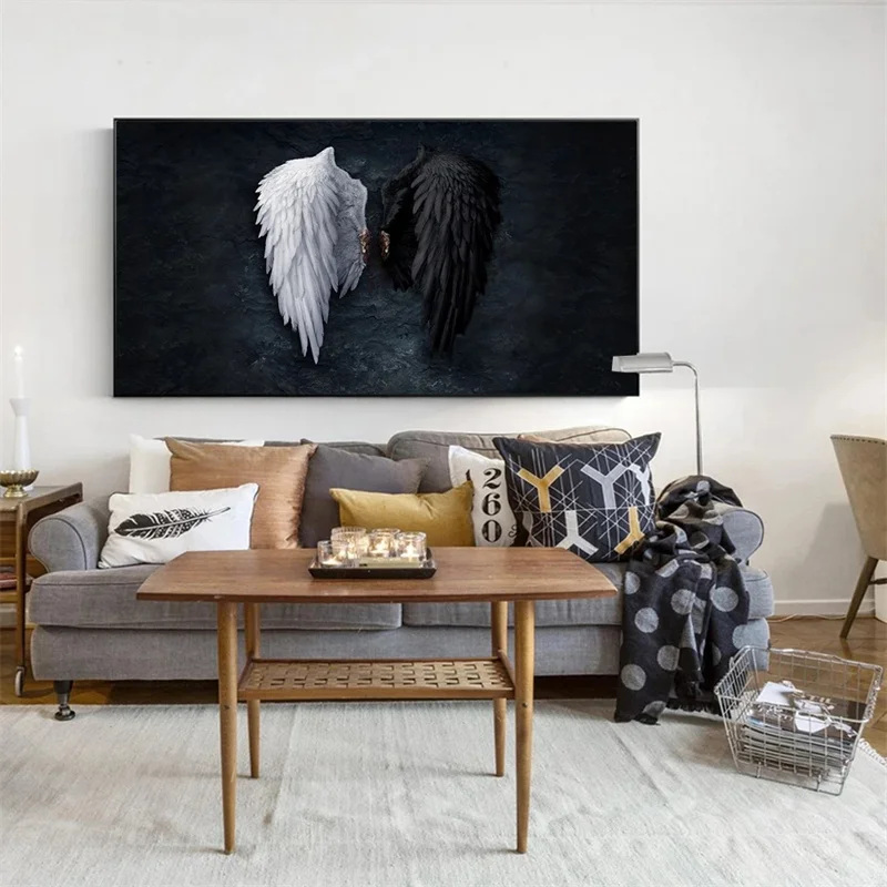 Черно-Белая настенная Картина на холсте с крыльями ангела простые Стильные плакаты и принты Настенная картина для гостиной
