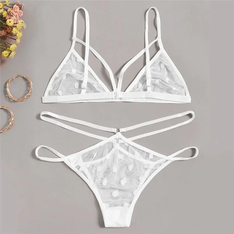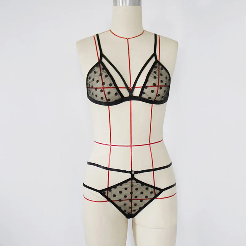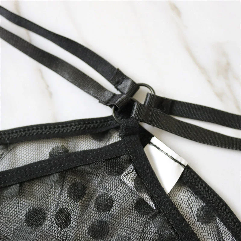 Ультратонкое прозрачное сексуальное женское нижнее белье бюстгальтер в горошек + трусики интимный бюстгальтер комплект для вечеринки трусики стринги кружевное черное белье
