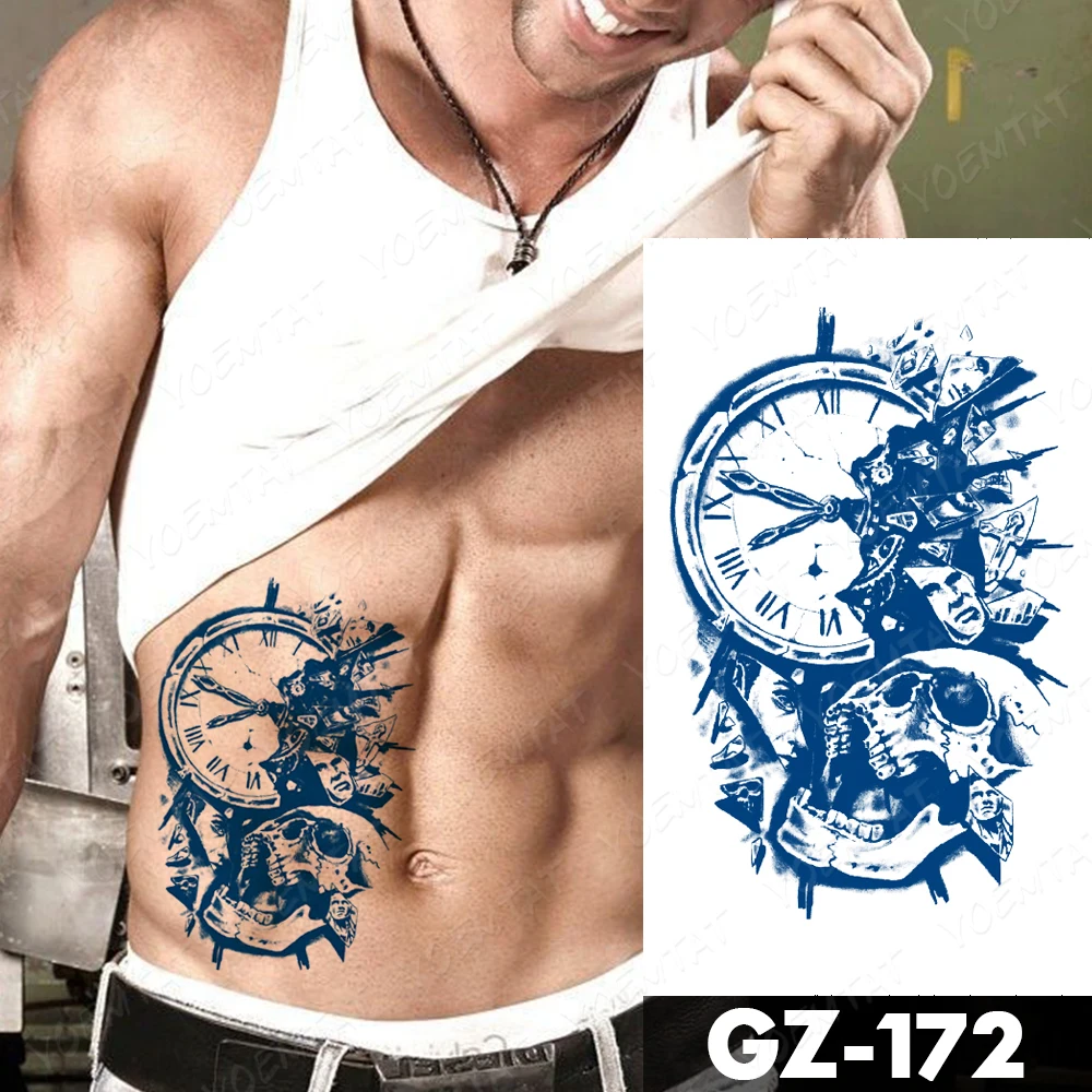 Сок прочного чернил татуировки, боди-арт Водонепроницаемый временная татуировка Стикеры крест компас тату для рук поддельные череп часы татуировки золотого и серебряного Для женщин Мужчины