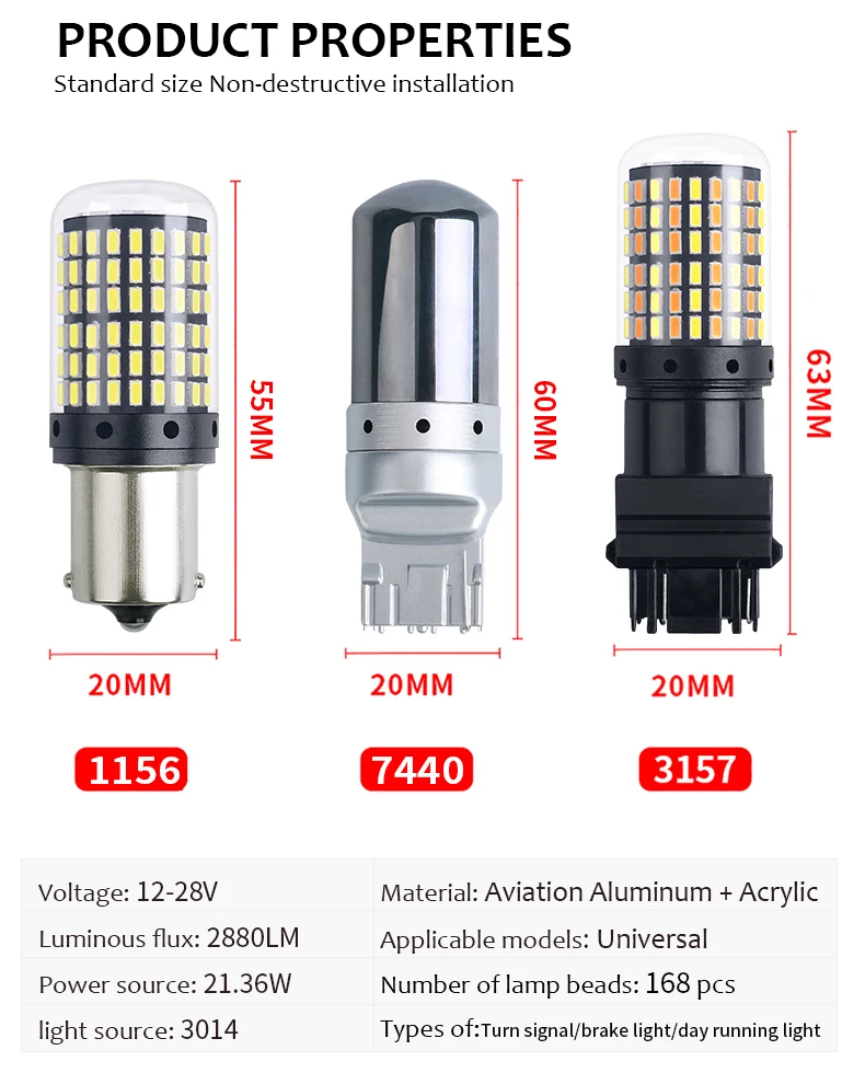 Тип разъема: (1156-P21W-BA15S 180 °) (1156-BAU15S PY21W 150 °)