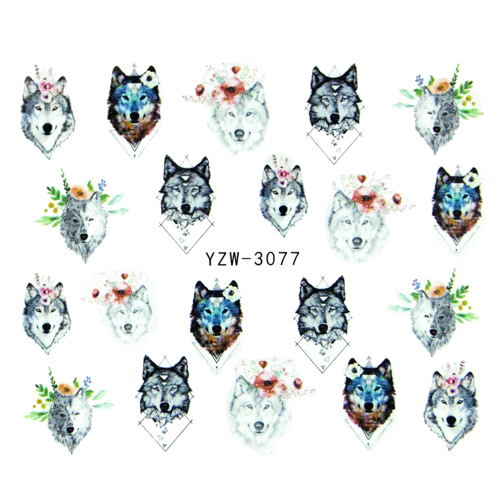 Фламинго Слайдеры для ногтей олень волк животное стикер для ногтей Переводные цветы Бабочка водяной знак стикер для дизайна ногтей DIY Декор