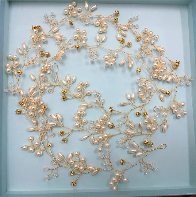 50 см Искусственный жемчуг стразы свадебные волосы лоза головной уб...