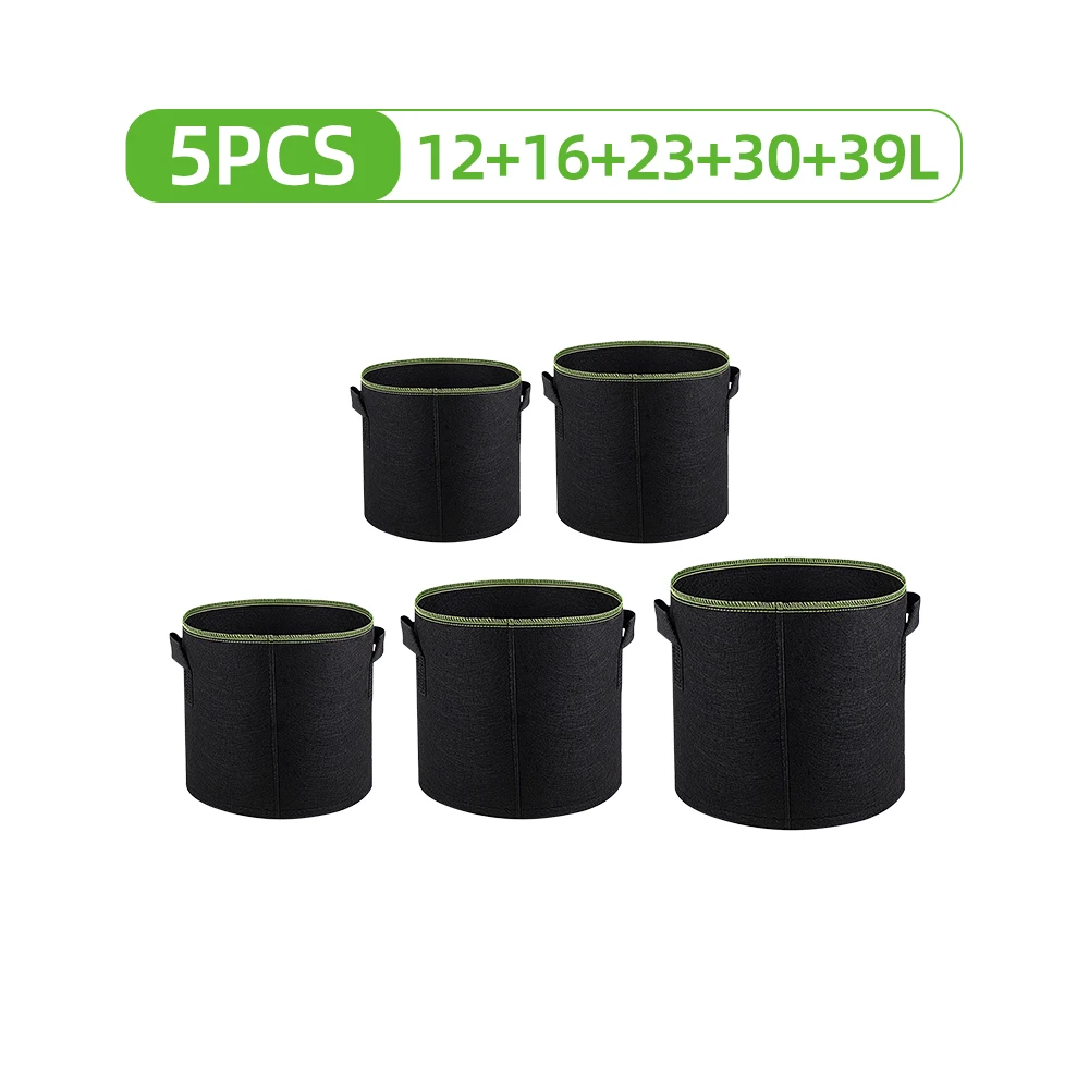 5 шт.-(3 галлона) 12 л +(4 галлона) 16 л +(5 галлонов) 23 л +(7 галлонов) 30 л +(10 галлонов) 39 л черный и зеленый подъемный тканевый цветочный горшок