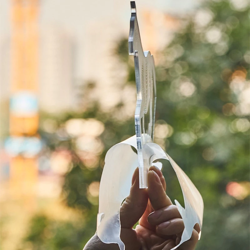 ● Перед вставкой в основание снимите защитную пленку с поверхности как спереди, так и сзади. ● Чтобы не оставлять отпечатков пальцев на акриле, удерживайте доску на кромке, а не на поверхности.