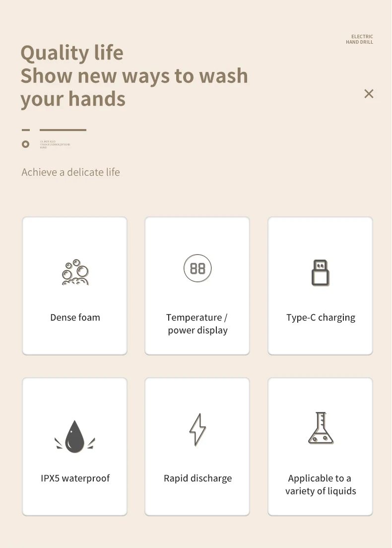 Посылка дошла достаточно быстро, всего 2 недели. Качество товара отличное. Залил обычное жидкое мыло и размешал с водой в пропорции 1 (мыло) к 2 (вода). На выходе мыльная пена... В комплекте ещё провод USB - Type-C для зарядки. Спасибо продавцу и производителю.