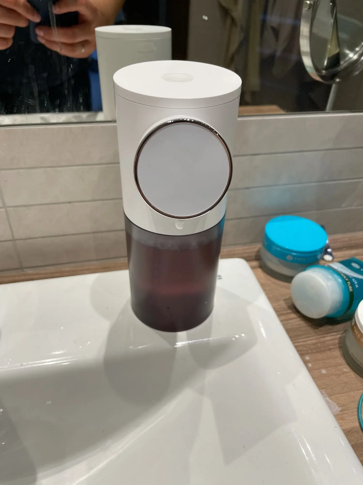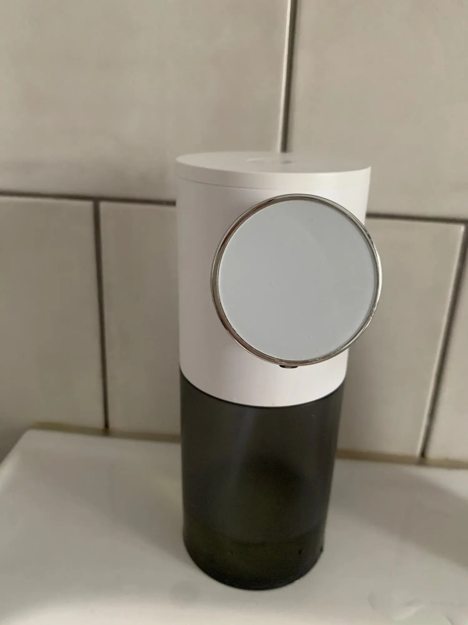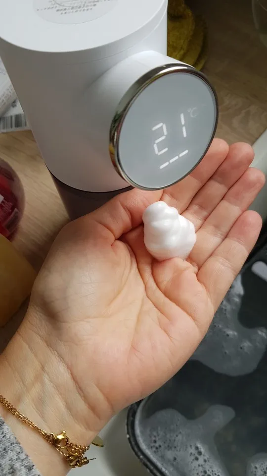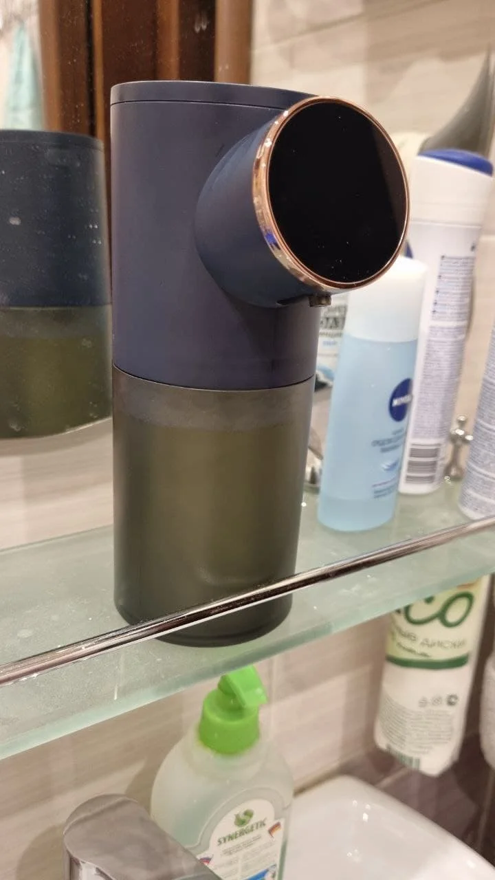 Коробка мятая, в подарок не пойдет, но с прибором все хорошо. Развел мыло 1/5, по виду вода получилась, но пена выходит хорошая. Добавлять мыло удобно, открыл и залил. Две недели - полет нормальный, заряд три палки и не падает, мыло где-то на 1/5 убыло. Пользователей 3 чел. Визуально пластик похуже чем на старых дозаторах сяоми (которые были на батарейках).