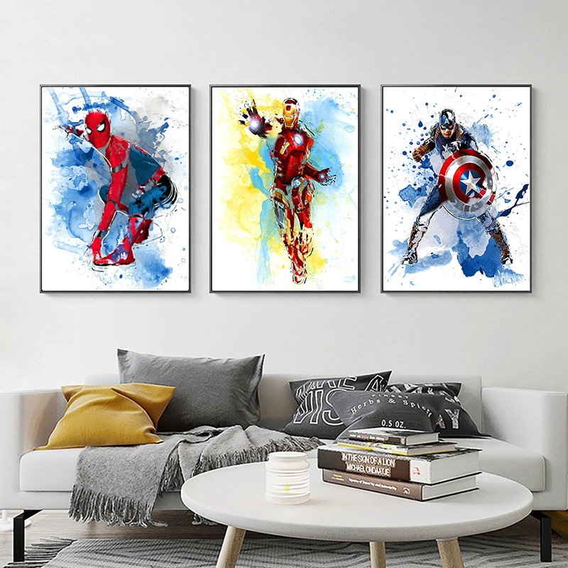 Декоративные постеры с акварелью Марвел, картины с принтом супергероев, Мстителей, Железного Человека-паука, холст для украшения детской спальни
